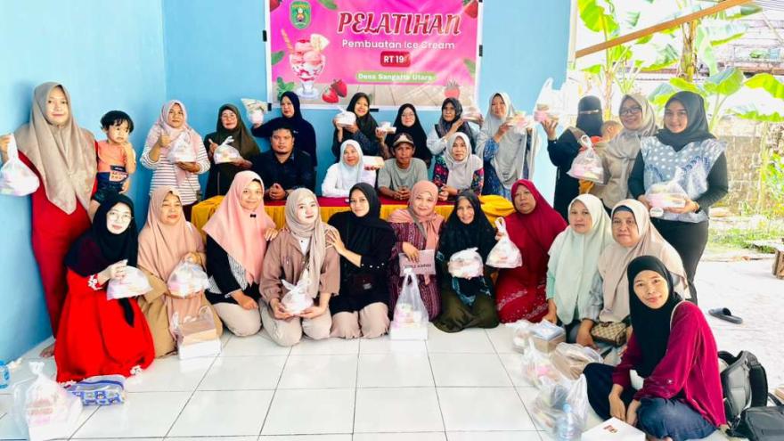 Kegiatan yang berlangsung di Balai Pertemuan RT 19 tersebut menghadirkan instruktur lokal yang berpengalaman dalam bidang kuliner. Dalam pelatihan ini, para peserta belajar mulai dari pengenalan bahan-bahan dasar es krim, teknik pembuatan es krim manual tanpa mesin, hingga pengemasan dan cara pemasaran produk secara sederhana.